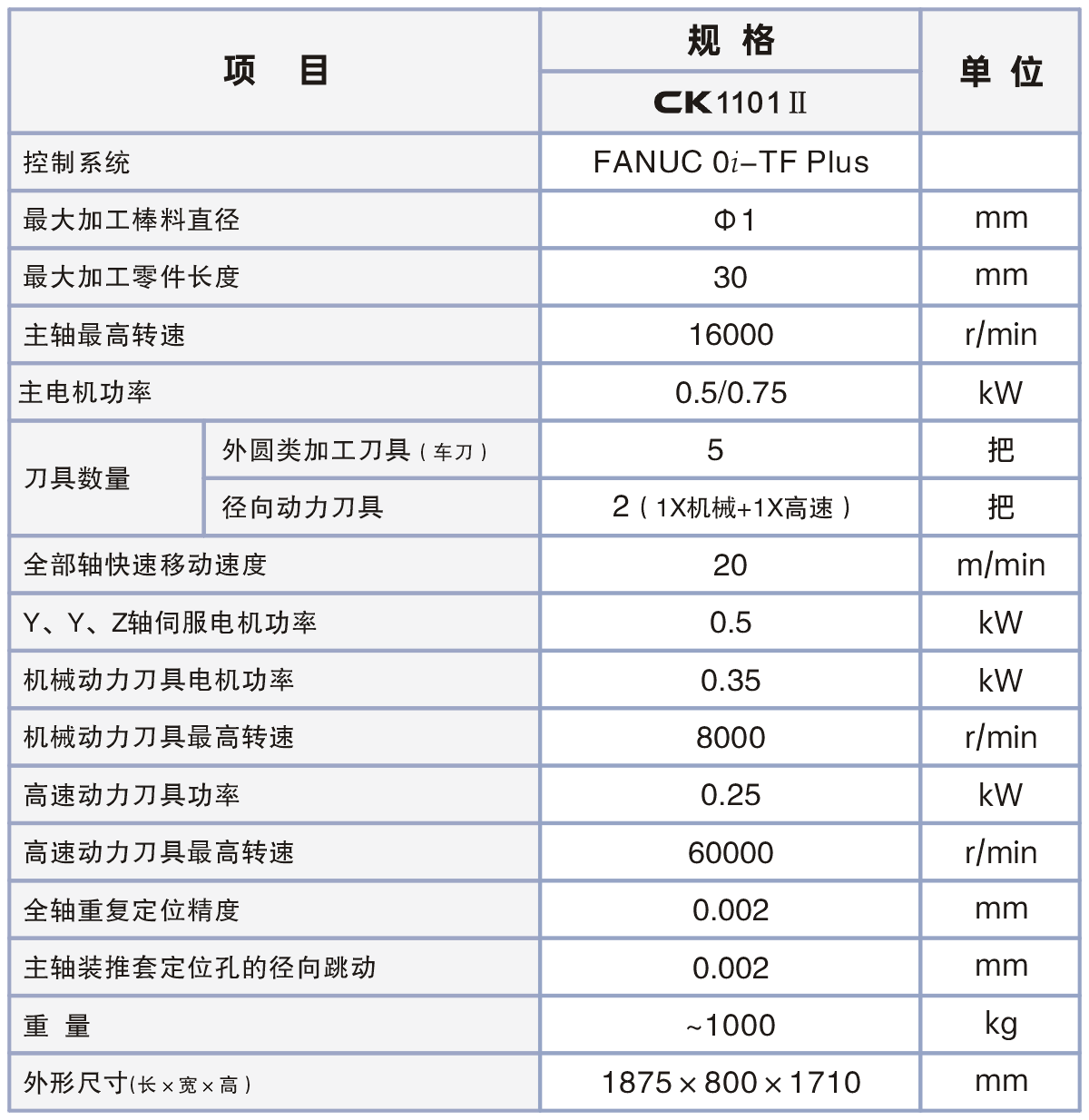 机床特点: